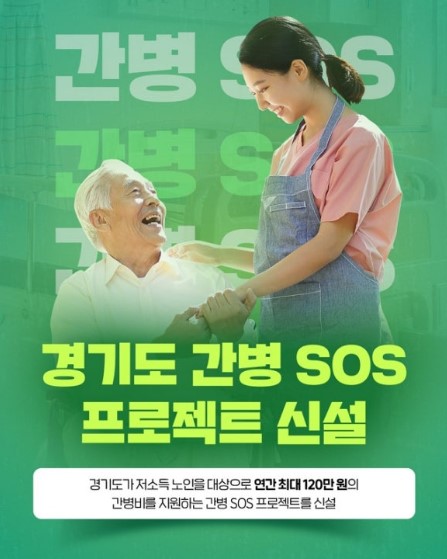 ‘간병 SOS 프로젝트’는 경기도에 거주하는 저소득층 중 상해·질병 등으로 병원급 의료기관 이상에 입원해 간병서비스를 받은 65세 이상 노인이 지원 대상이다.