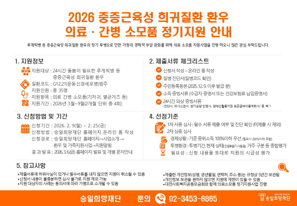 2026 중증근육성 희귀질환 환우 의료·간병 소모품 정기지원 안내